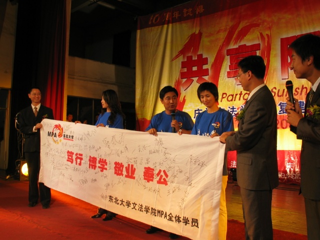东北大学从试办MPA教育之初就注重引导MPA文化建设,我校已经形成了独具特色的MPA文化体系:MPA 研究生提出了 “笃行、博学、敬业、奉公”的 MPA口号、设计了以此为核心内涵的MPA旗帜、提炼形成了“聚是一团火,散做满天星”的MPA理念,设计了东北大学MPA星火标识。我校在MPA研究生入学之初就发给每位同学印有东北大学MPA标识的文化衫和MPA徽章,并隆重举行开学典礼和年级授旗仪式,让学生一开始就感受这种浓烈的文化氛围,并积极参与到文化建设中来。这些MPA文化发挥了文化纽带功能,培育了精神、塑造了品格、规范了行为。/span>/p>我校的MPA文化建设和管理模式得到了全国MPA教育界的认可,已逐步在全国范围内拓展 。2004年11月在复旦大学举行的第二届全国MPA论坛上,“聚是一团火,散做满天星”的东大精神被正式确定为全国MPA理念,根据东北大学MPA标识设计的星火图案被确定为全国MPA标识。/span>/p>