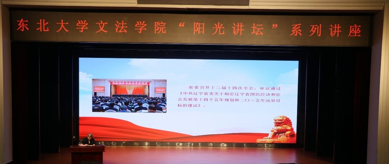 4月18日上午,文法学院“阳光讲坛”系列讲座之“党的十九届五中全会精神和省委‘十四五’规划《建议》主要目标任务解读”在东北大学南湖校区汉卿会堂一楼报告厅举办,讲座由中共辽宁省委政策研究室主任、东北大学客座教授赵建华主讲。校党委副书记、纪委书记杨明,文法学院党委书记隋永强出席,文法学院部分教师,2019、2020级MPA研究生参加,讲座由文法学院副院长杜宝贵教授主持。