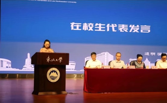 在校生代表发言结束后,2023级MPA新生代表陈驰发言。陈驰同学表达了新生同学们加入东北大学文法学院的兴奋之情,对自己过去努力的肯定以及对未来学习生活的期待。陈驰同学发言结束后,大会第一部分开学典礼也到此结束。