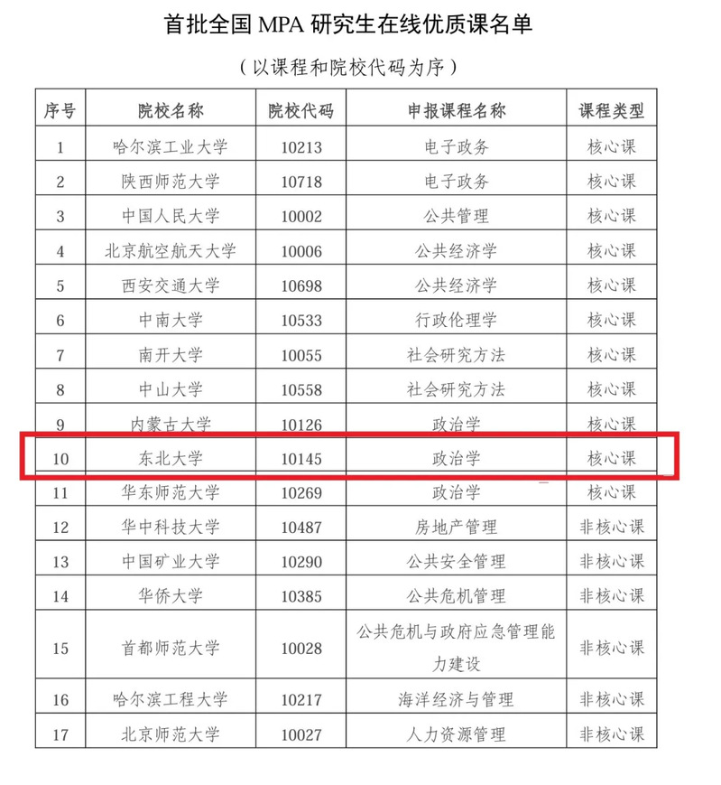 我校MPA教师团队一直以来都高度重视MPA研究生课程建设、实践教学与案例建设,积极推进MPA研究生教育教学改革。此次多项成果获奖是东北大学MPA优秀教学质量的体现。获评“在线优质课”、“精品案例课堂”,对推动课程建设,提高MPA教育教学质量具有积极促进作用。案例的成功入库,对打造应用型专业人才的培养特色和优势具有积极意义。未来我校将继续深化MPA教育教学项目建设和成果研发,提升MPA研究生的实践能力和创新思维,持续推进MPA研究生教育内涵式高质量发展。